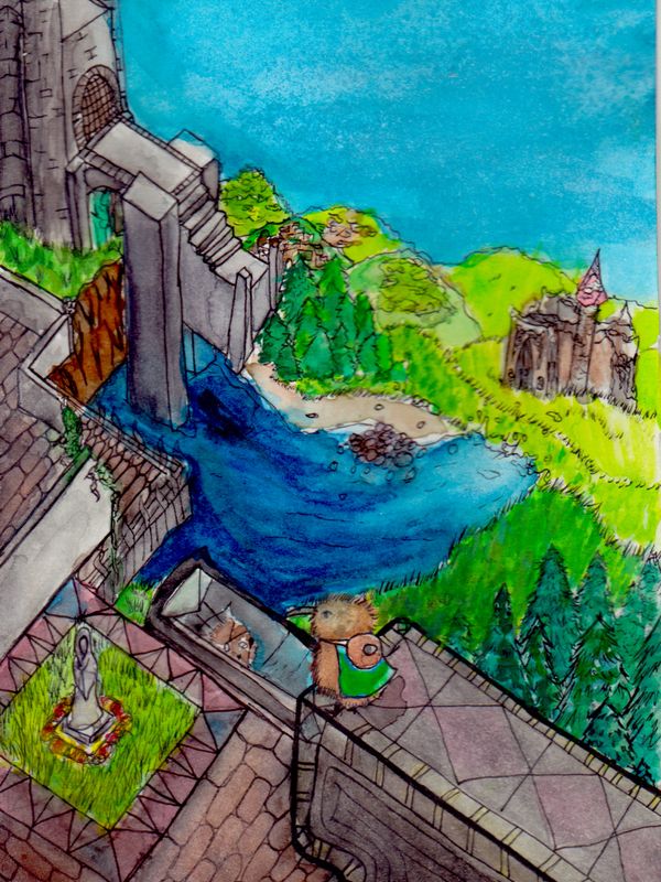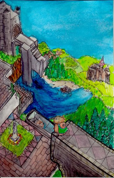 A landscape of ruins. Ru wakes up here in one of the towers, finding the ruins to be a labyrinth.